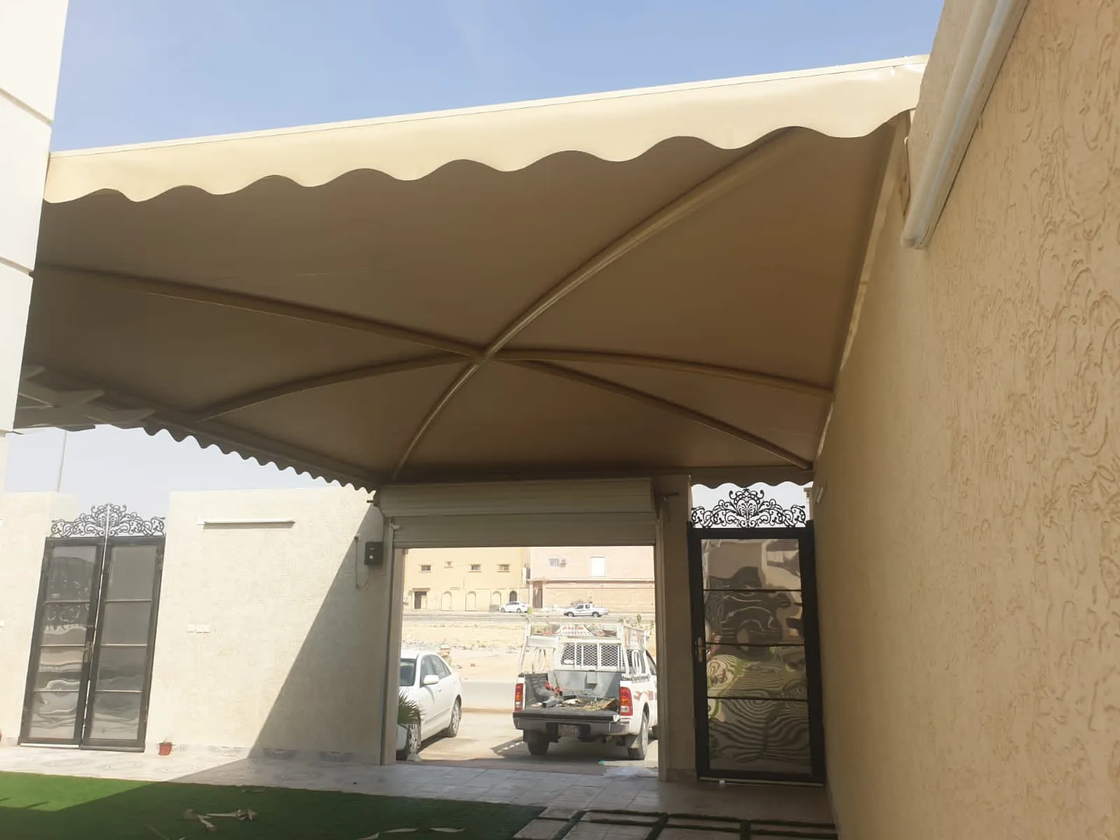- تصميم وتنفيذ مظلات مختلفة للأحواش والحدائق المنزلية.